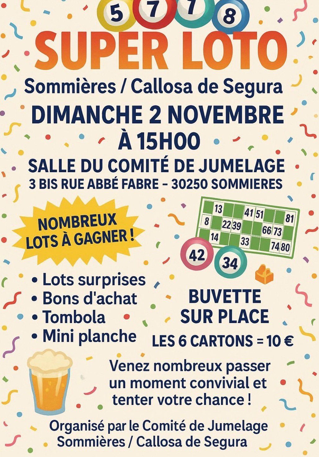- Tarifs : 10¤ les 6 cartons