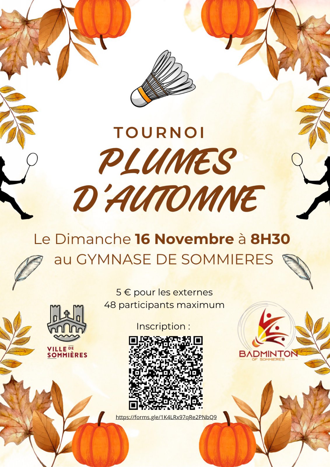 Le club de badminton de Sommières est heureux de vous inviter à son tournoi Plumes d’Automne le 16 Novembre à 8h30, une journée placée sous le signe du sport, de la convivialité et du fair-play !