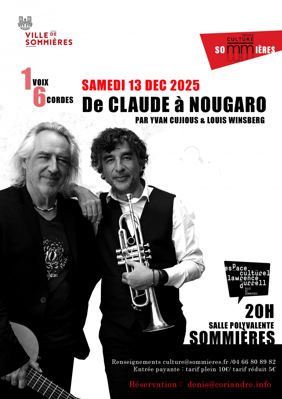 Une voix, six cordes, c'est la rencontre entre le chanteur-trompettiste Yvan Cujious, proche collaborateur de Claude Nougaro, et le guitariste de jazz Louis Winsberg (Sixun, Maurane, Dee Dee Bridgewater), qui accompagnera aussi le chanteur sur scène.